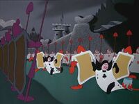 The song was performed by quartet group The Mellomen, which consisted of the late Thurl Ravenscroft, the late Bill Lee, Bill Cole, and Gene Merlino; and the Queen's voice actress, the late Verna Felton.